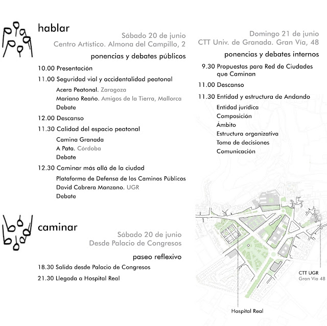 Los próximos 20 y 21 de junio se celebrará en Granada, bajo el lema “hablar y caminar“, el IV Encuentro Andando, foro de organizaciones de peatones.